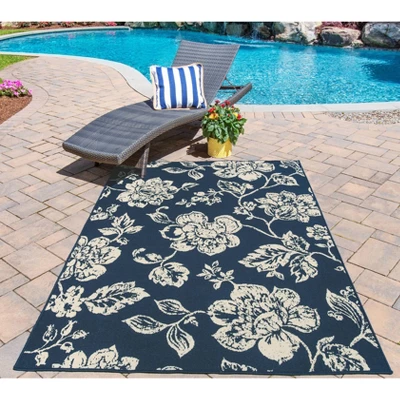 This elegant indoor/outdoor all-weather area rug offers everything you need to complete the ultimate outdoor room. Repeating stripes, diamonds, trellis and arabesque shapes meet nautical icons like ropes, anchors and waves, adding a luxe layer to all interior and exterior living spaces, including patios, porches and pool decks. Durable power-loomed construction ensures each decorative floorcovering transitions beautifully from season to season while the vibrant color palette and enduring polypropylene fibers offer endless design possibilities indoors and out.