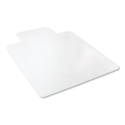 Thinner, light weight chair mat for occasional use on carpets up to 1/4″ thick. Easy-glide rolling surface provides effortless chair movement. Studded design secures mat from moving while protecting carpet from caster wear, spills and heavy traffic. Free and Clear non-orthophthalate, non-cadmium formula promotes a healthy work environment while offering exceptional clarity and durability. Classic straight edge finish. Economical, protective vinyl chair mat prevents wear and tear and extends carpet life. For occasional office use on carpets up to 1/4″ thick, Low Pile/Commercial Grade. Choose a higher pile chair mat if daily usage is over 4 hours. Easy-glide rolling surface provides effortless chair movement. Free and Clear non-phthalate, non-cadmium formula promotes a healthy work environment while offering exceptional clarity and durability. Straight edge. Studded bottom surface for superior gripping power on carpets. Sold as 1 Each.