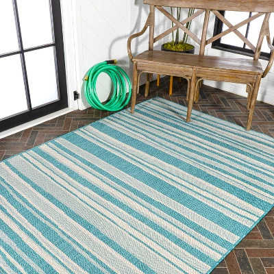 Our wavy stripe rug adds modern style to your mid-century bungalow, beach cottage or farmhouse. Our durable low pile rug features varying stripes in three contrasting colors. Add graphic punch to your living room, dining room, bedroom, or porch with this easy-care, family-friendly rug.