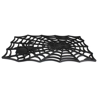 Give your guests a spooky welcome with this spider and web outdoor mat. This thick and durable rubber mat will be perfect for wiping feet and stopping debris from entering your home. Enhance your entry or patio area with a new doormat that fits your Halloween decor!Product Features:Black spider web rectangular doormatDepicts a crawling spiderSkid-resistant backingRecommended for outdoor onlyCare instructions: sweep or lightly hose cleanDimensions: 0.75″H x 30″W x 18″DMaterial(s): rubber/coir fiber