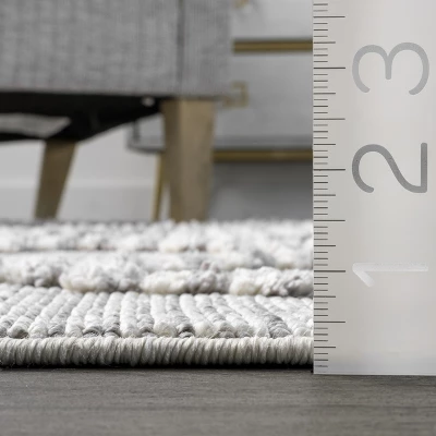 Complete your space with this geometric area rug. With neutral hues and a dynamically textured high/low pattern, this floor covering will pair perfectly with any décor from modern to bohemian. Machine made of synthetic fibers; this rug is built to last while remaining soft underfoot. Enjoy every room in your home with our easy to care for and pet-friendly area rugs.