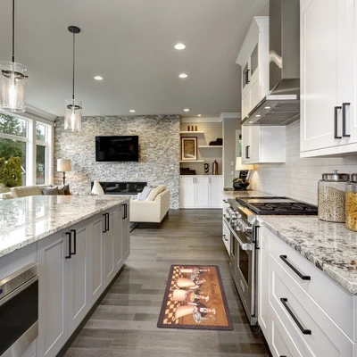 - Superior Comfort & Durability. Designed with resilience against everyday wear-and-tear, this mat is kid and pet friendly and perfect for high traffic areas of your home such as, kitchen, entryway, nursery, craft room, laundry room, standing desk area, kitchen sink and home office.