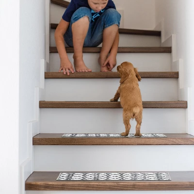 Enrich your stairs with these stunning, yet practical and decorative stair treads. The bohemian design adds interest and style to every step. The rubber backing provides additional safety for climbing kids and pets. At 26 inches x 8.6 inches, these machine washable treads are ideally sized for the majority of staircases.