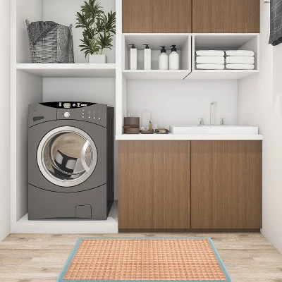- Multi-purpose:Kitchen mats widely used for home decor,indoor front welcome mat,kitchen rug,laundry room,standing desk,back doors,garage,office. Nonskid backing holds the mat in place for extra safety.