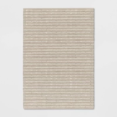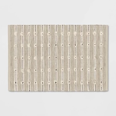 Refresh your space with modern, functional elegance with this Woven Striped Flatweave Rug from Threshold™. Featuring a timeless pattern of black stripes accented with tufted dots on a cream background, the rectangular handmade rug blends seamlessly with just about any existing décor. The woven cotton-blend material provides soft comfort underfoot while adding warmth to hard flooring like tile. This accent rug is perfectly sized for placing in front of your kitchen sink, in your laundry room or by the entrance.